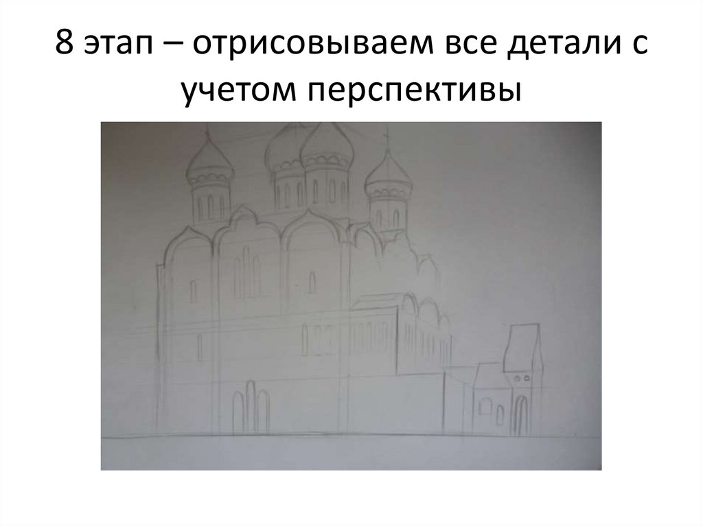 4 этап- уточняем положение и размер элементов храма(барабаны, расположенные под куполами, купола