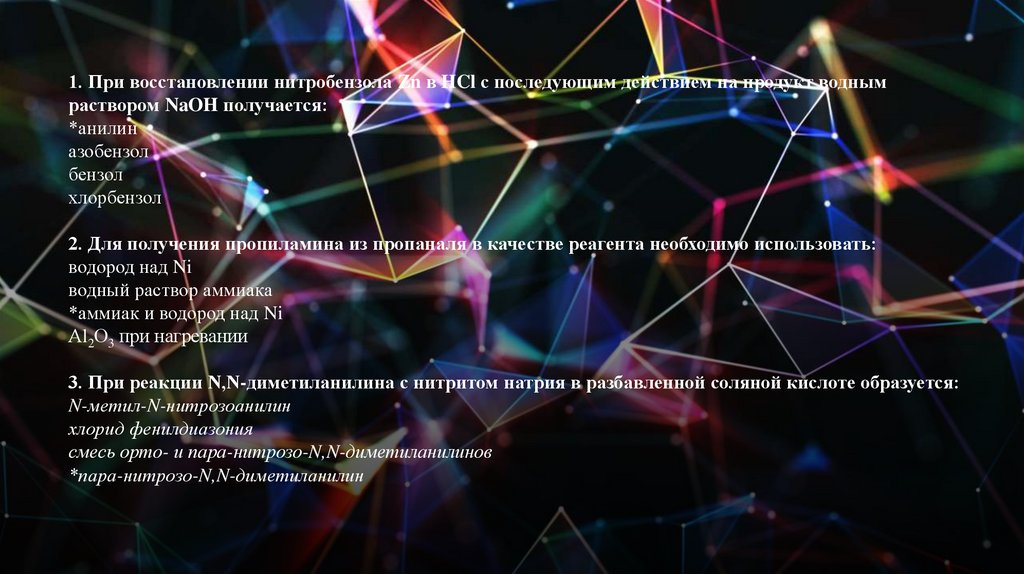 1. При восстановлении нитробензола Zn в HCl с последующим действием на продукт воднымраствором NaOH получается: