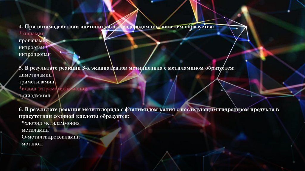 4. При вазимодействии ацетонитрила с водородом над никелем образуется:*этанамин