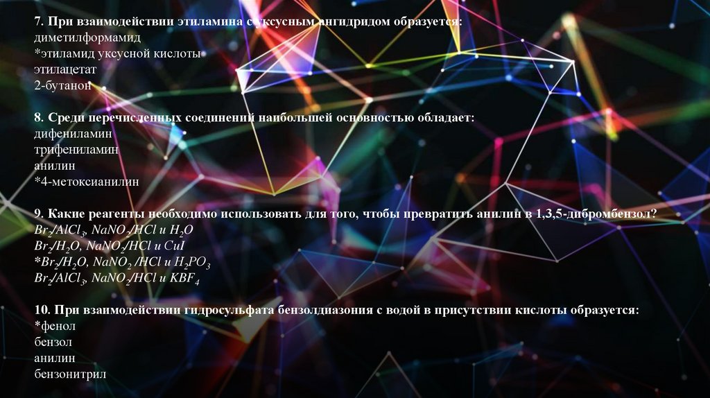 7. При взаимодействии этиламина с уксусным ангидридом образуется:диметилформамид
