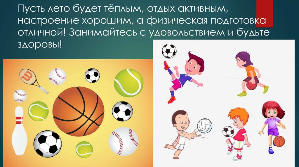 Пусть лето будет тёплым, отдых активным,настроение хорошим, а физическая подготовка