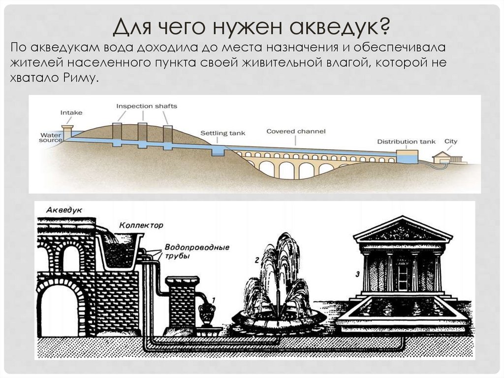 Для чего нужен акведук?По акведукам вода доходила до места назначения и обеспечивала