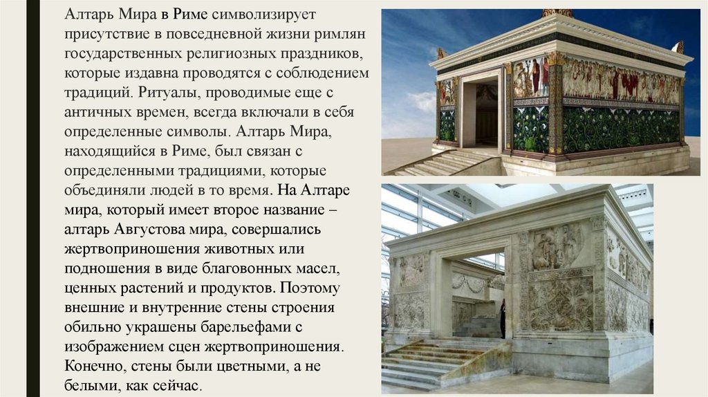 определенные символы. Алтарь Мира,