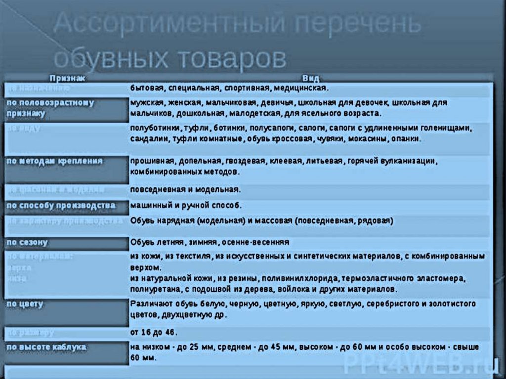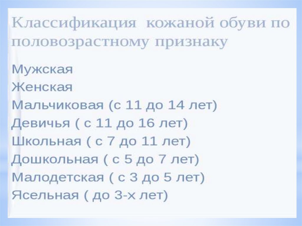 Классификация и ассортимент кожаной обуви (урок № 3)