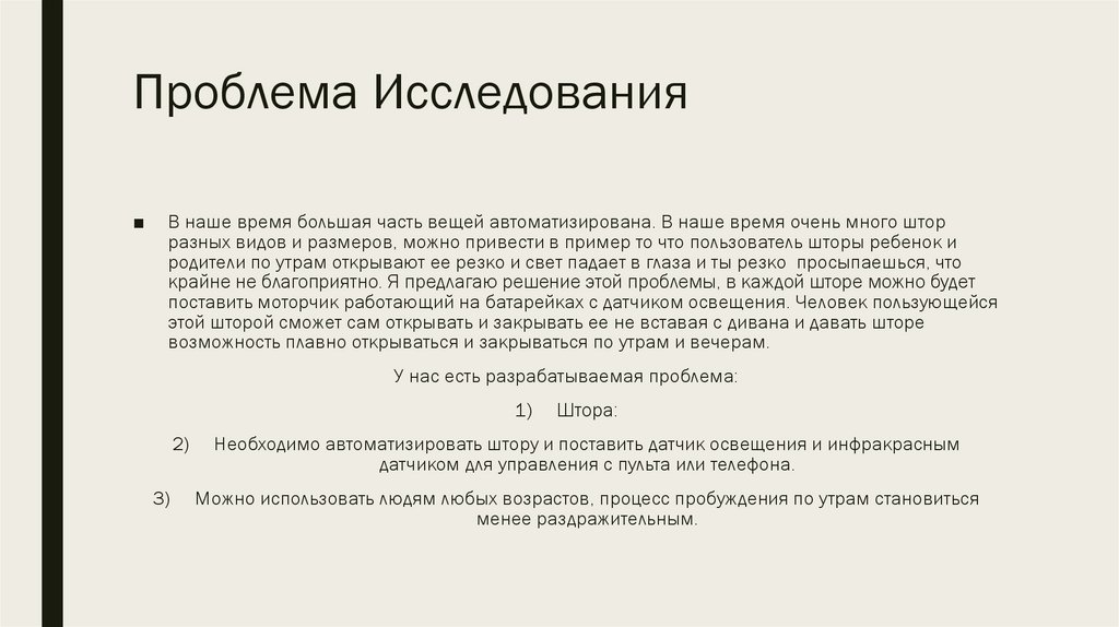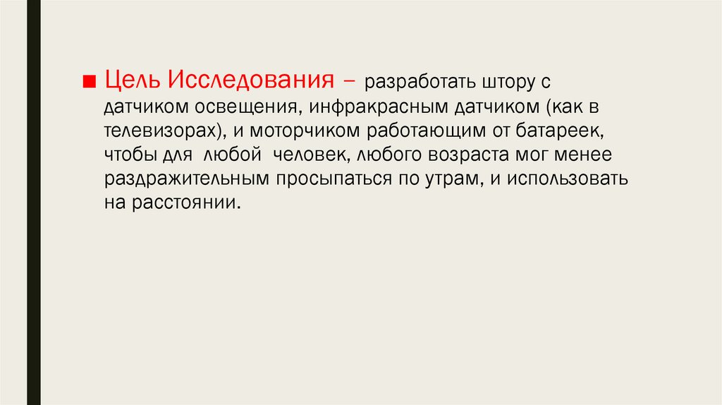■ Цель Исследования – разработать штору сдатчиком освещения, инфракрасным датчиком (как в