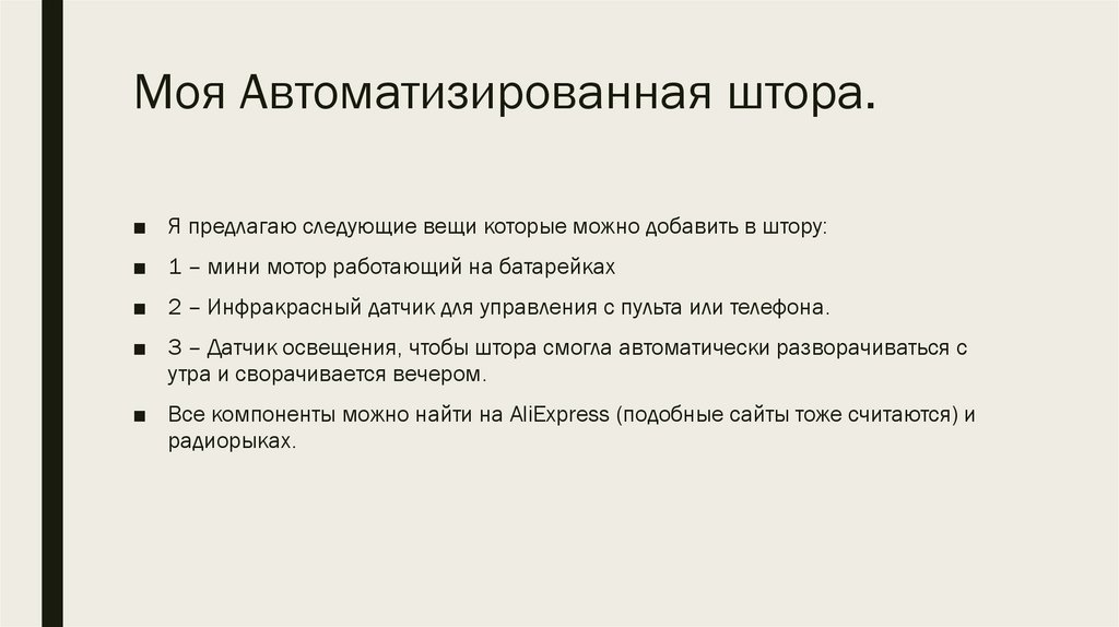 Моя Автоматизированная штора.■ Я предлагаю следующие вещи которые можно добавить в штору: