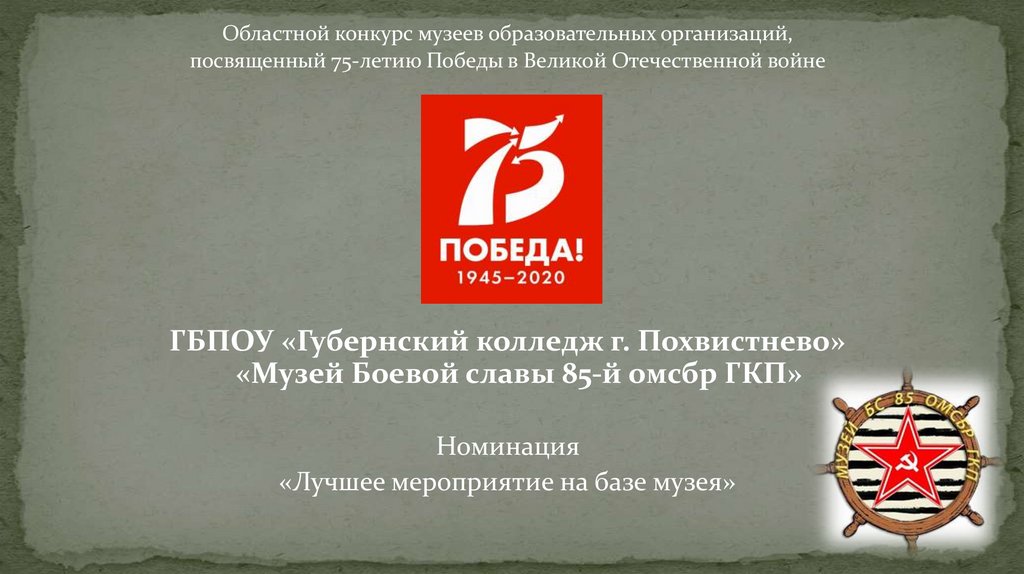 Областной конкурс музеев образовательных организаций,посвященный 75-летию Победы в Великой Отечественной войне
