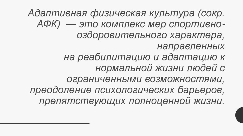 Адаптивная физическая культура (сокр.АФК) — это комплекс мер спортивнооздоровительного характера,