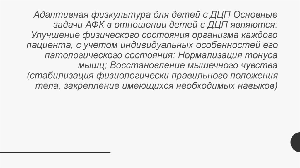 Адаптивная физкультура для детей с ДЦП Основныезадачи АФК в отношении детей с ДЦП являются: