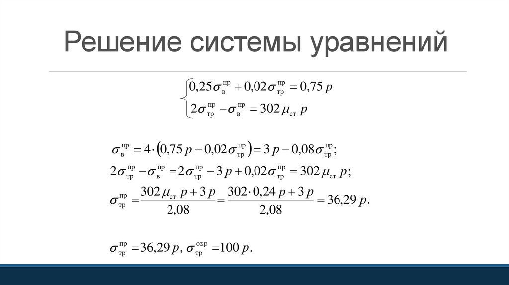 Решение системы уравнений0,25 впр 0,02 трпр 0,75 p