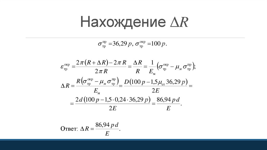 Нахождение ΔRтрпр 36,29 р , трокр 100 р .