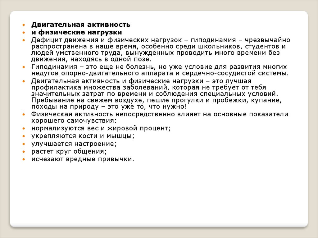 Двигательная активностьи физические нагрузки