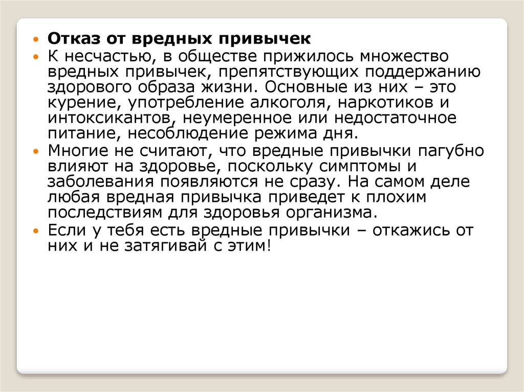 Отказ от вредных привычекК несчастью, в обществе прижилось множество