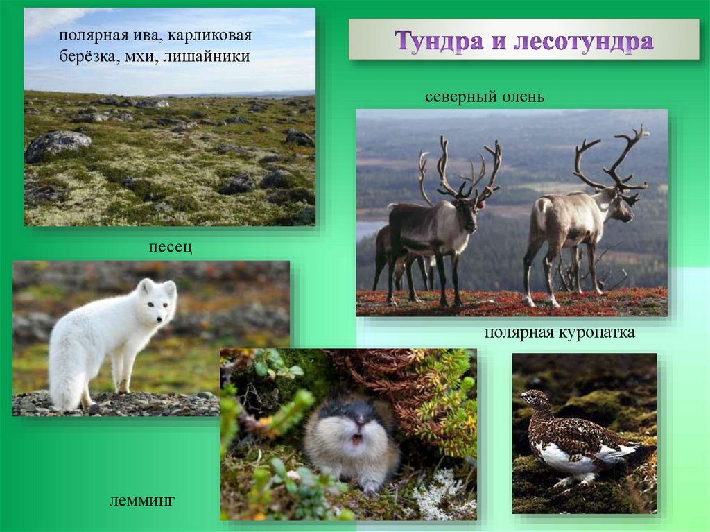 полярная ива, карликоваяберёзка, мхи, лишайники