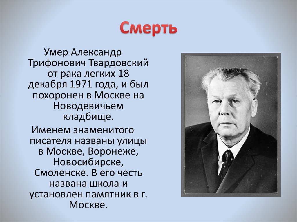 Умер АлександрТрифонович Твардовский