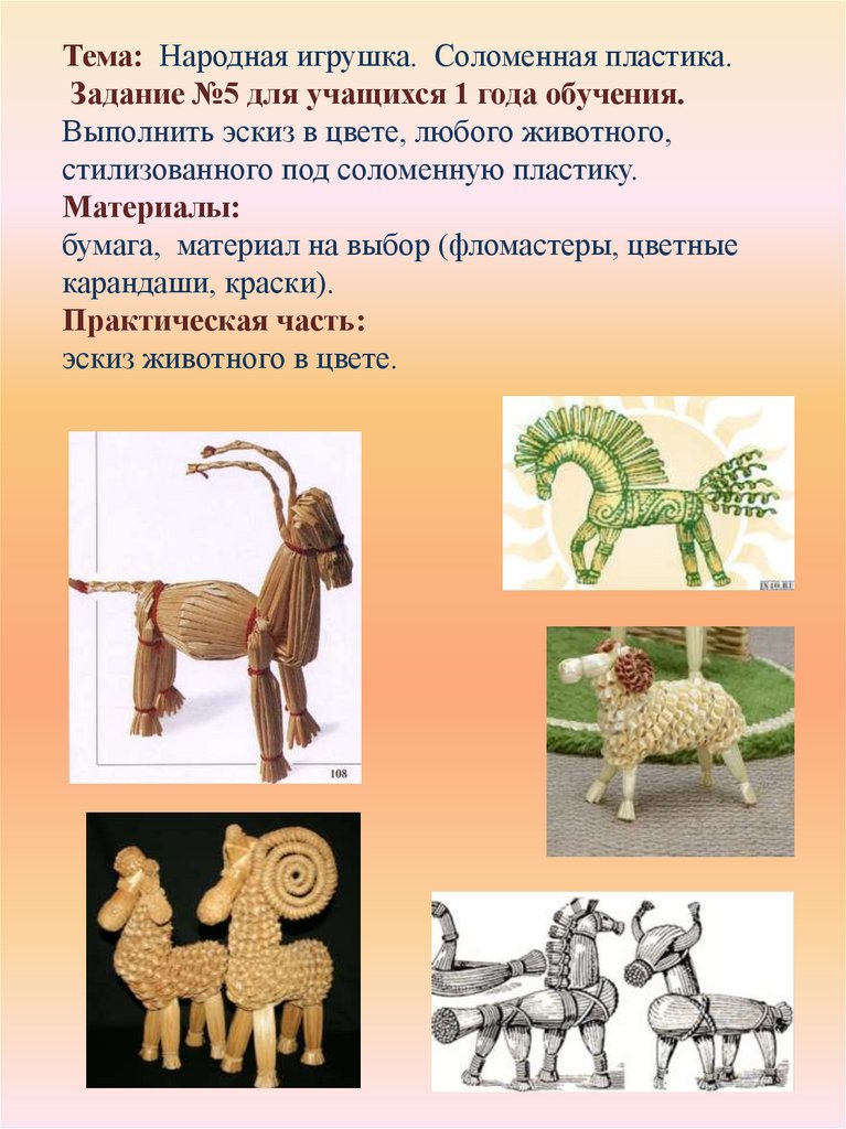 Тема: Народная игрушка. Соломенная пластика.Задание №5 для учащихся 1 года обучения.