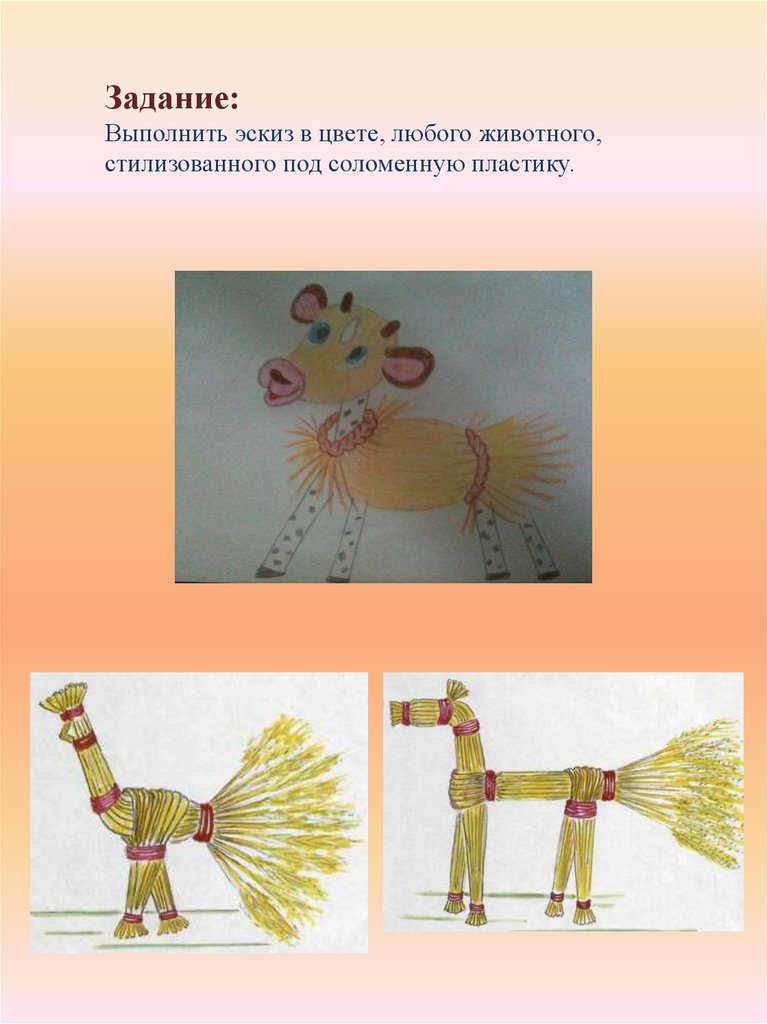 Народная игрушка. Соломенная пластика. Задание для учащихся 1 года обучения, задание №5