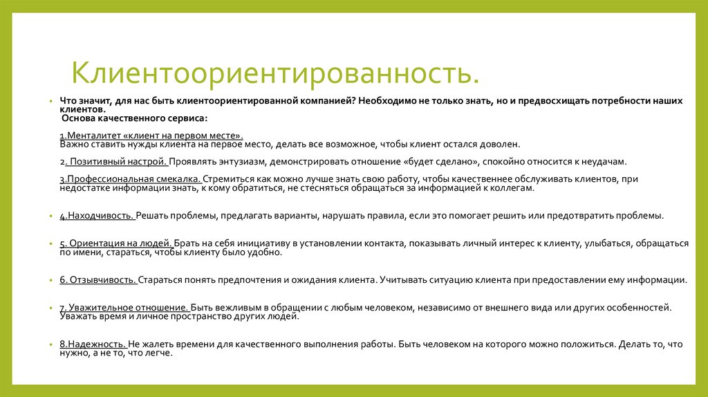 Клиентоориентированность.Что значит, для нас быть клиентоориентированной компанией? Необходимо не только знать, но и предвосхищать потребности наших