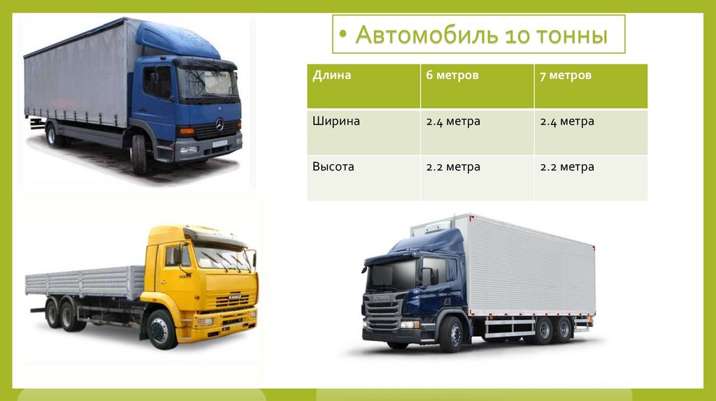 • Автомобиль 10 тонныДлина