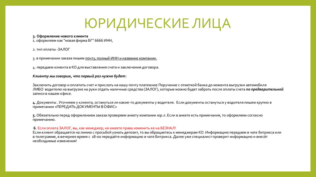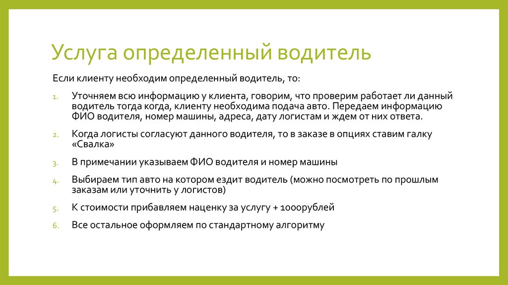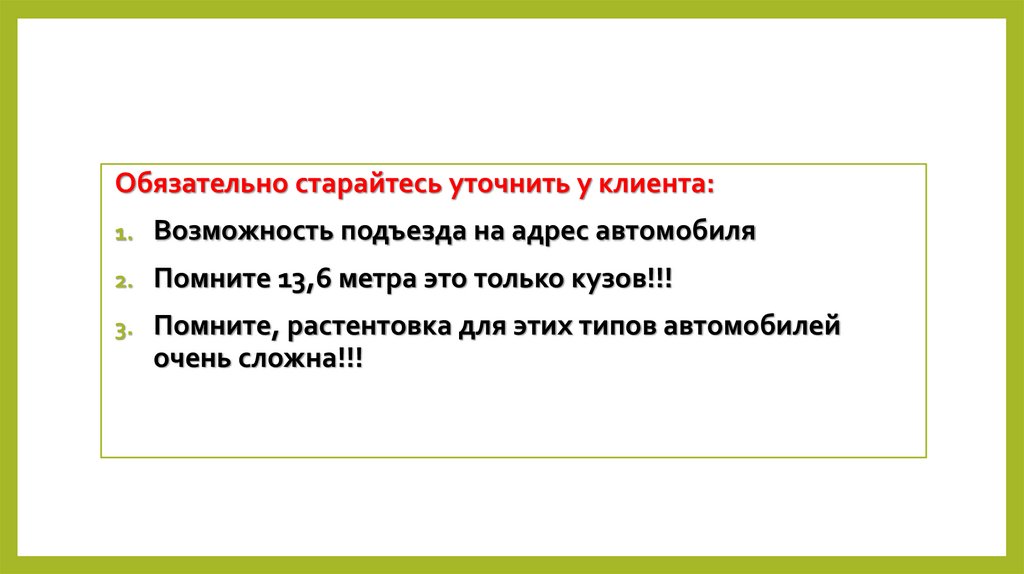 • Обязательно уточняйте у клиента как будет