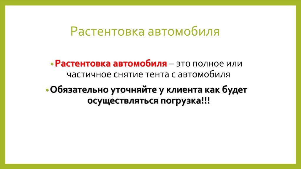 Растентовка автомобиля• Растентовка автомобиля – это полное или