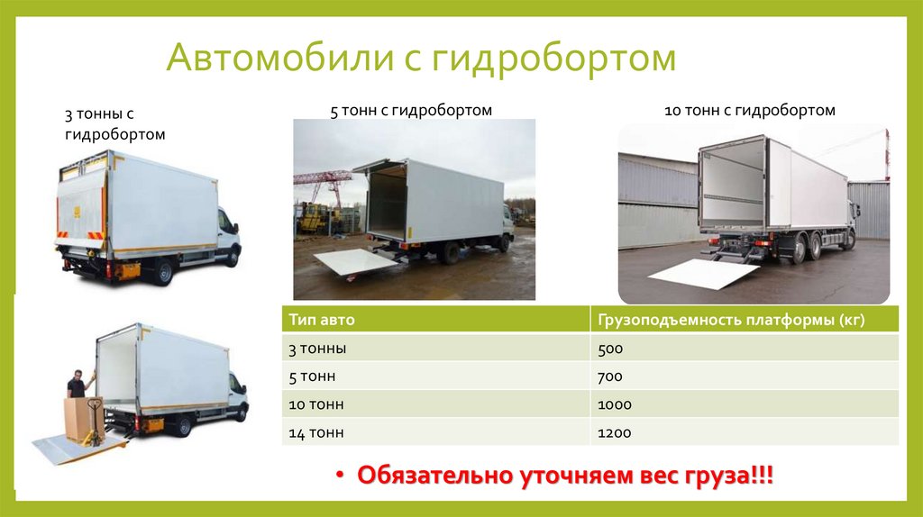 Грузоподъемность автомобиля до 14