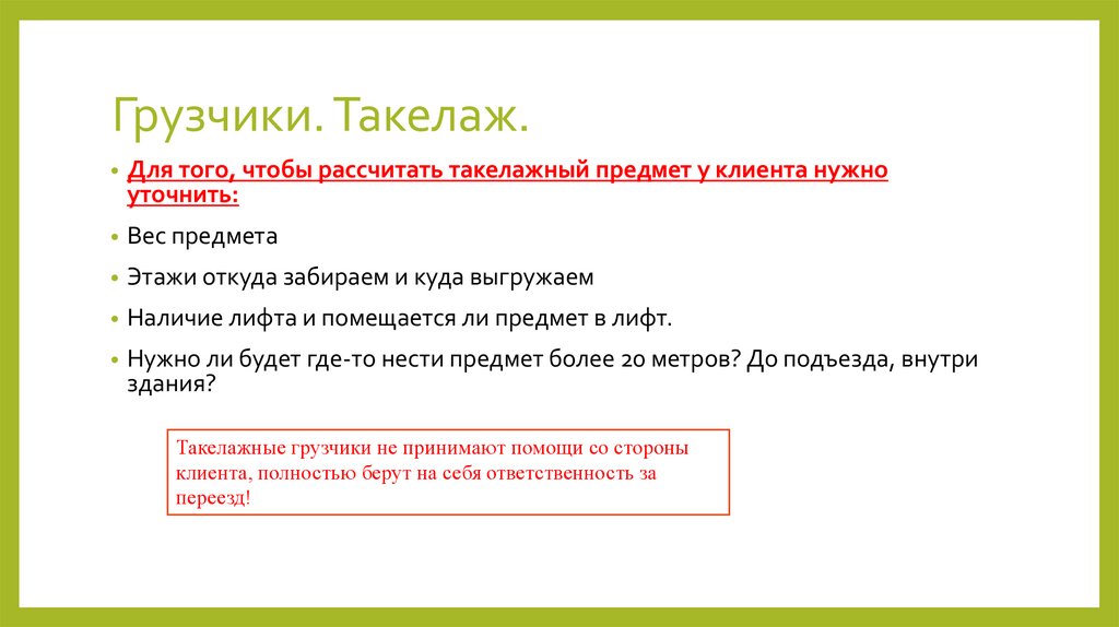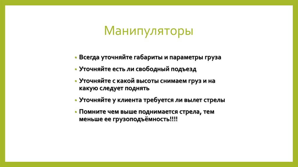 Вынос груза разрешен 1 метр!!!