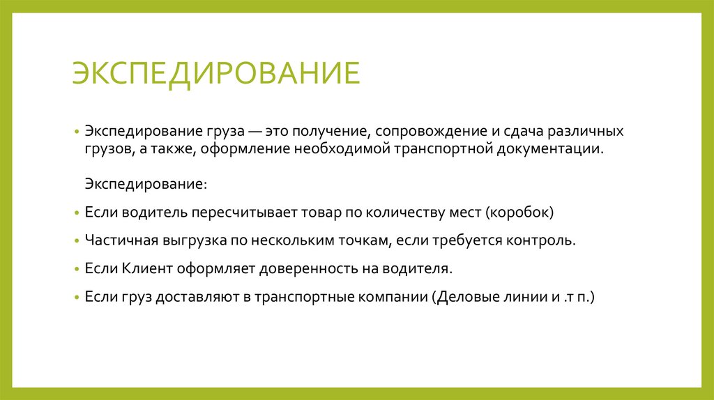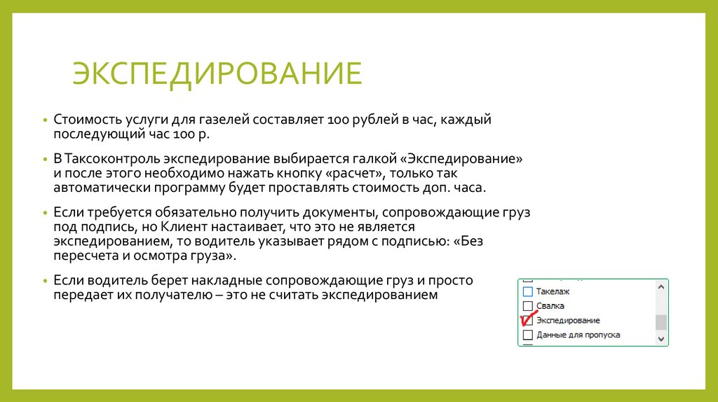 наличие документов на груз.