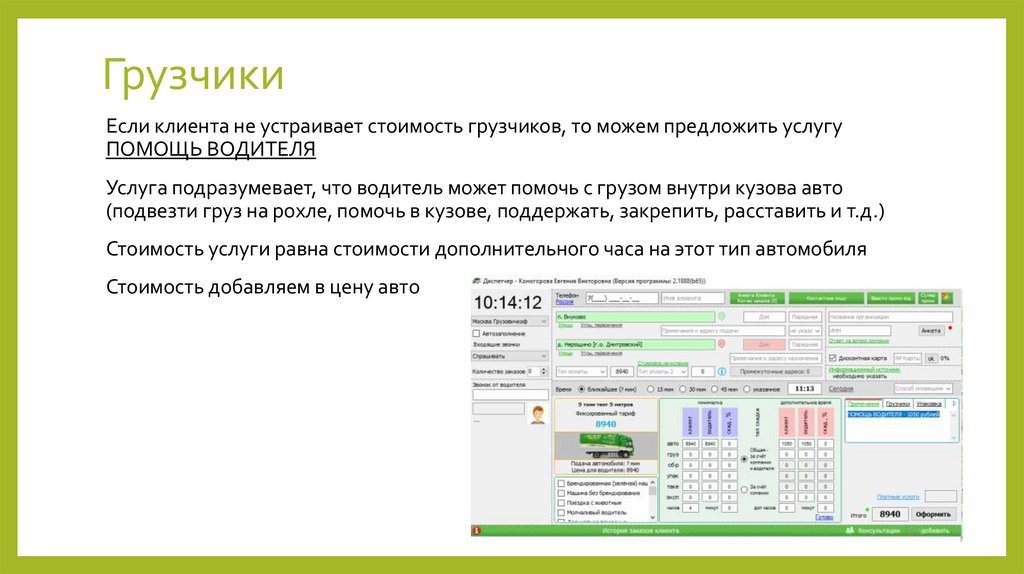 выйдет из кузова) клиент предоставляет самостоятельно.