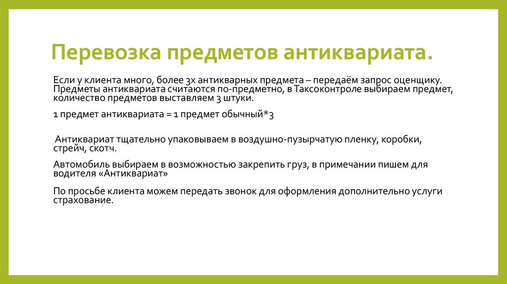 Обязательно указываем, что будет в перевозке и