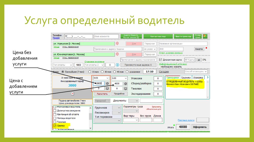 клиента и для водителя