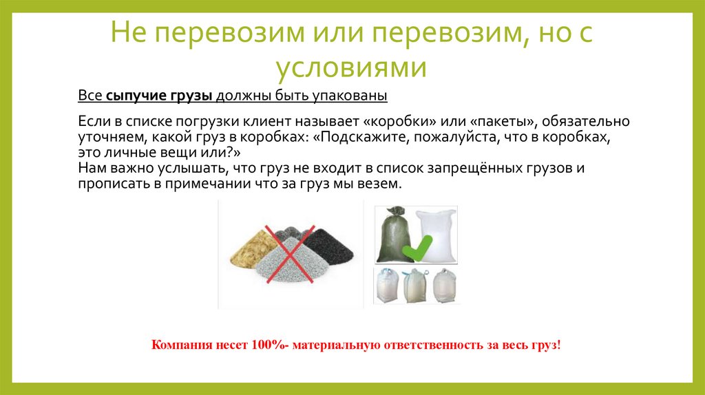 Нам важно услышать, что груз не входит в список запрещённых грузов и