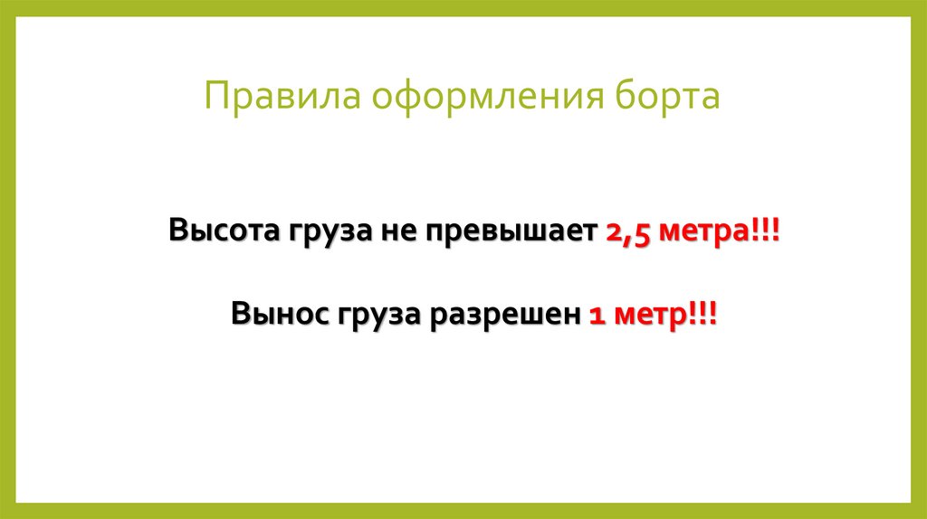 Правила оформления бортаВысота груза не превышает 2,5 метра!!!