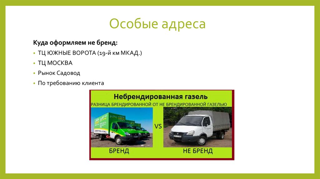 Особые адресаКуда оформляем не бренд: