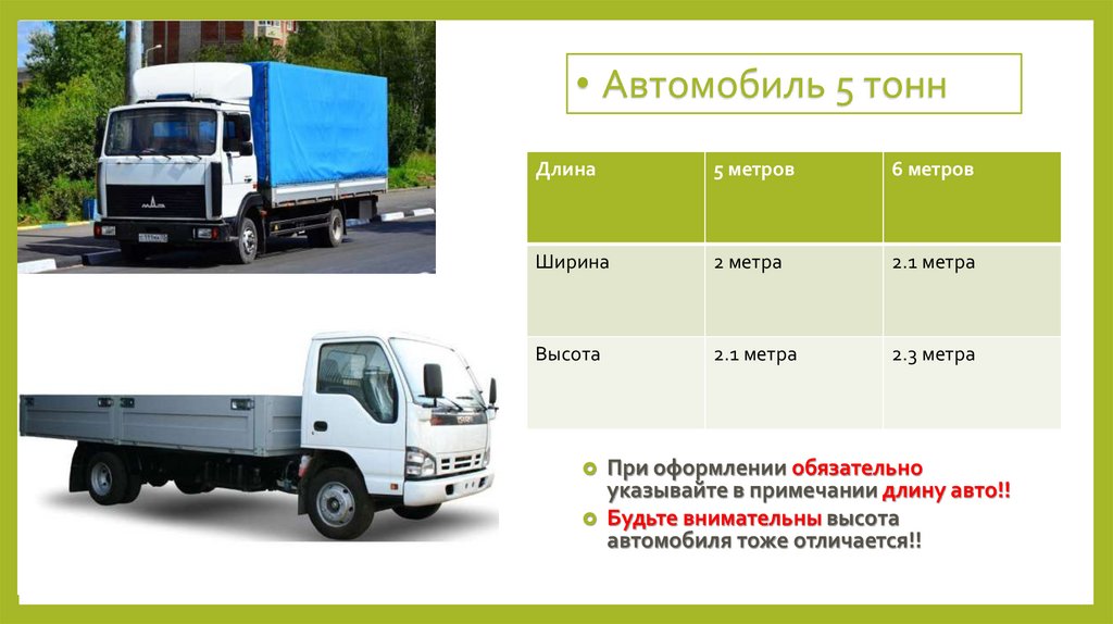 • Автомобиль 5 тоннДлина