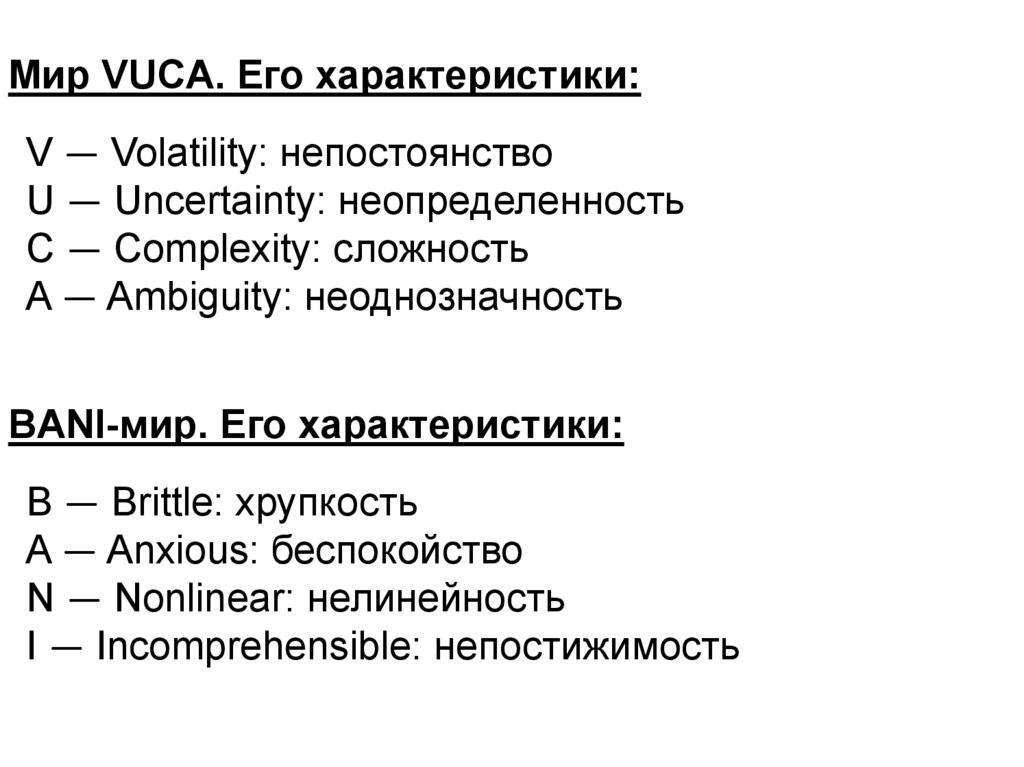 Мир VUCA. Его характеристики:V — Volatility: непостоянство