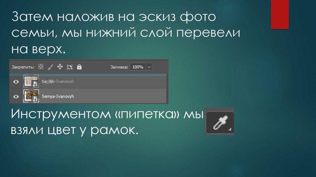 Затем наложив на эскиз фотосемьи, мы нижний слой перевели