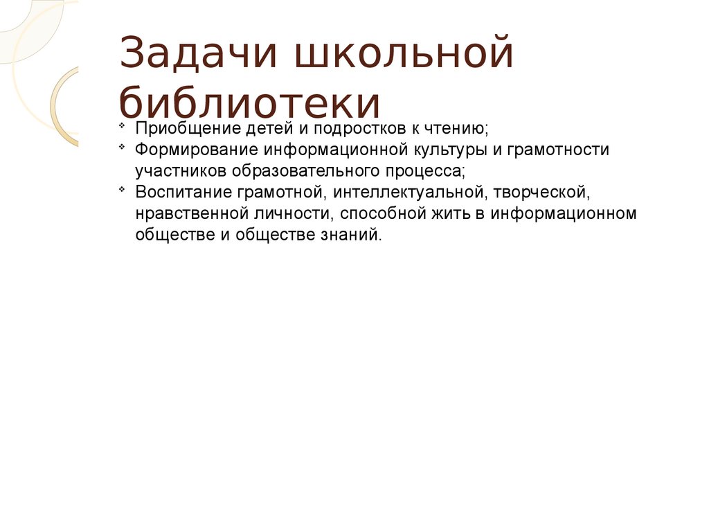 Задачи школьнойбиблиотеки