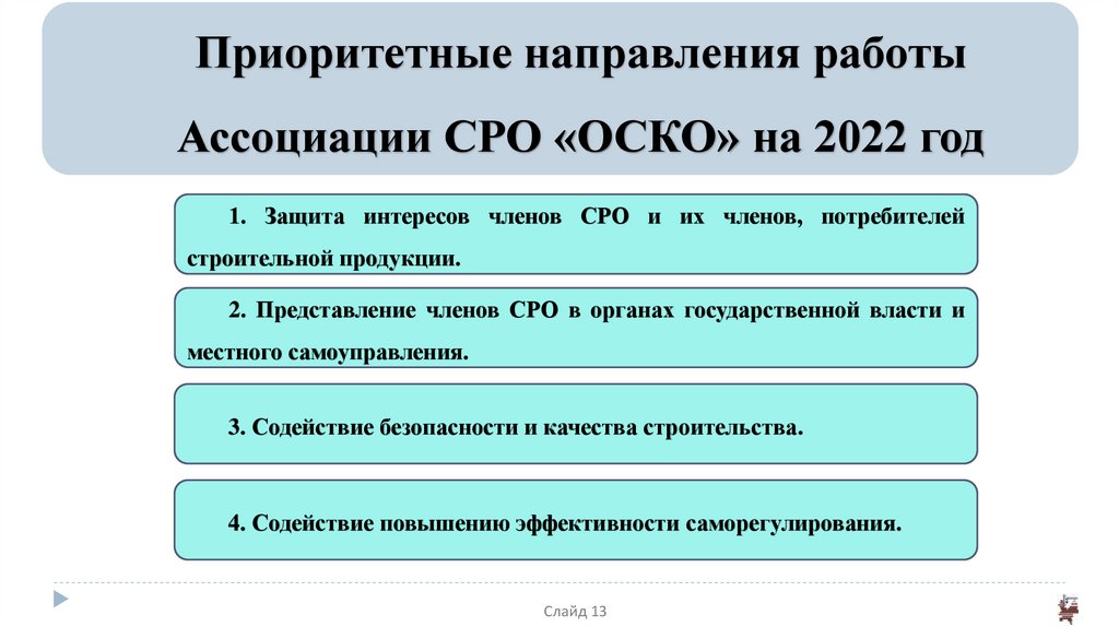 Приоритетные направления работыАссоциации СРО «ОСКО» на 2022 год