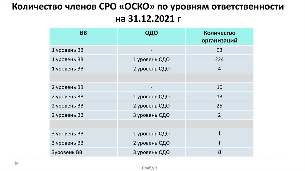 Количество членов СРО «ОСКО» по уровням ответственностина 31.12.2021 г
