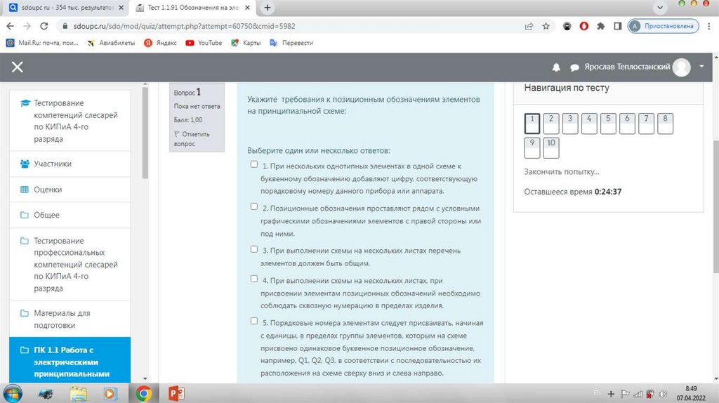 Тестирование компетенций слесарей по КИПиА 4 - го разряда