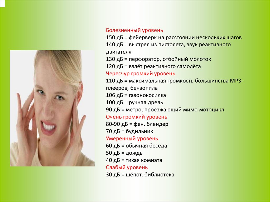 110 дБ = максимальная громкость большинства MP3плееров, бензопила