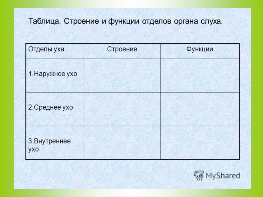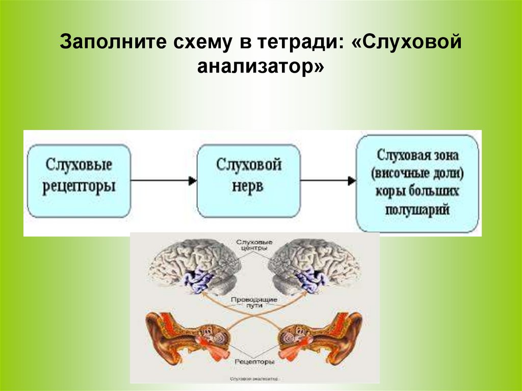 Заполните схему в тетради: «Слуховойанализатор»
