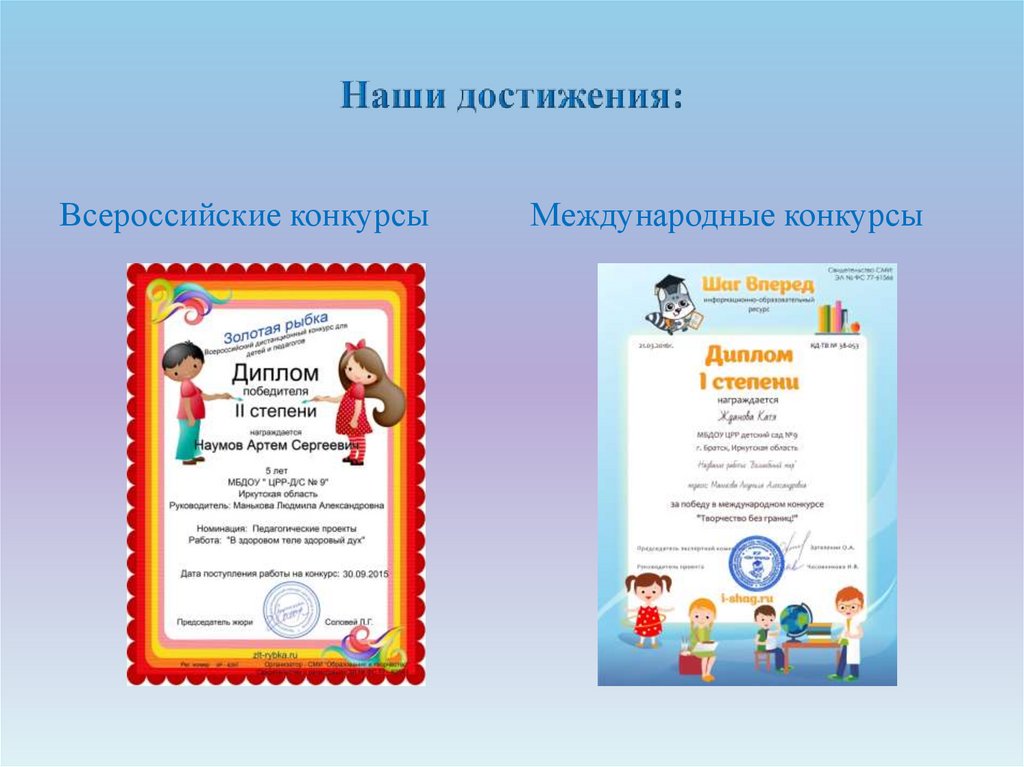 Всероссийские конкурсыМеждународные конкурсы