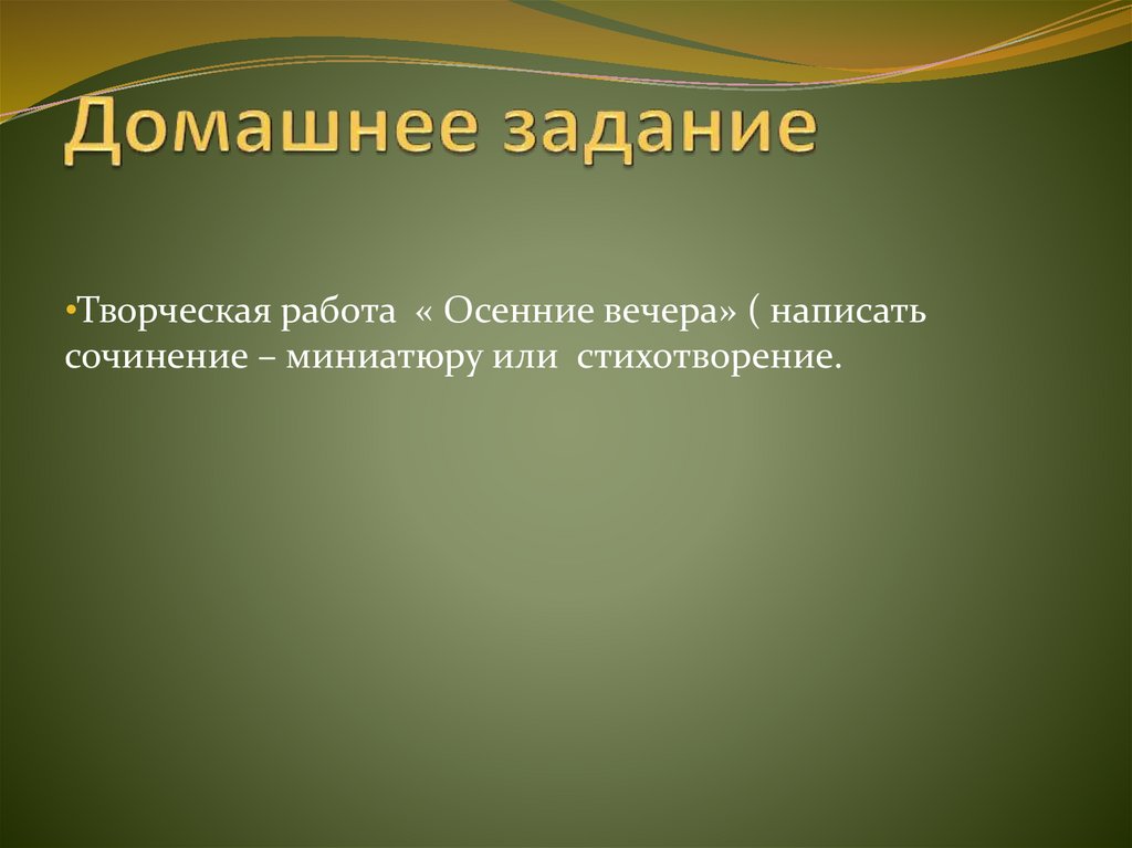 •Творческая работа « Осенние вечера» ( написатьсочинение – миниатюру или стихотворение.