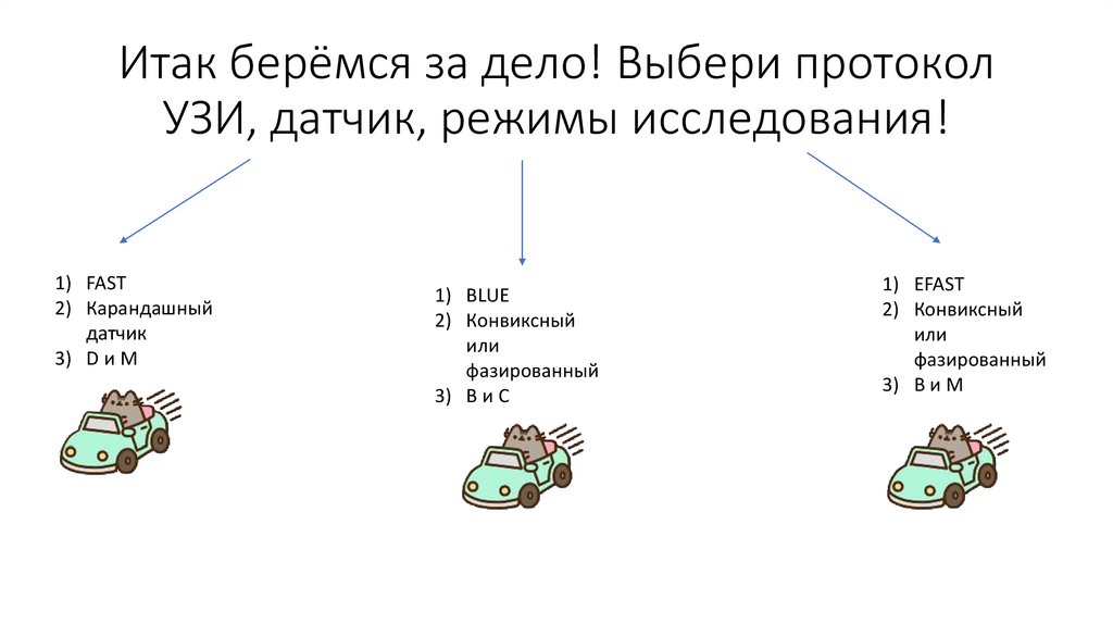 Итак берёмся за дело! Выбери протоколУЗИ, датчик, режимы исследования!