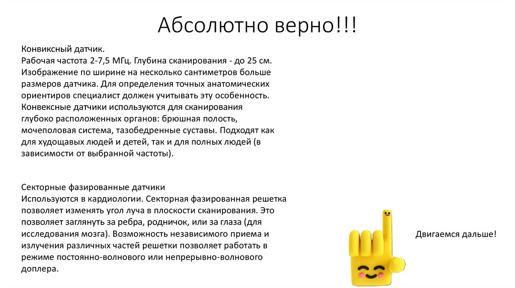 Рабочая частота 2-7,5 МГц. Глубина сканирования - до 25 см.