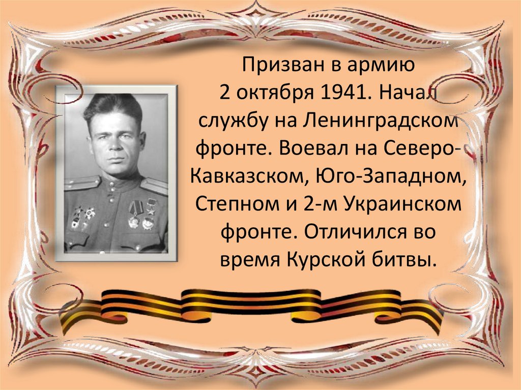 фронте. Воевал на СевероКавказском, Юго-Западном,