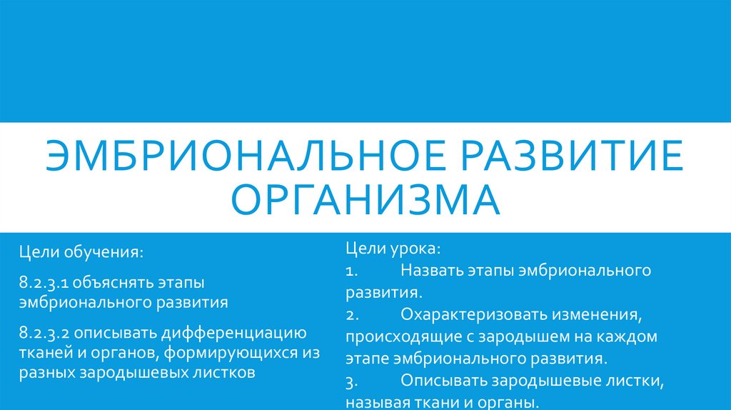 ЭМБРИОНАЛЬНОЕ РАЗВИТИЕОРГАНИЗМА