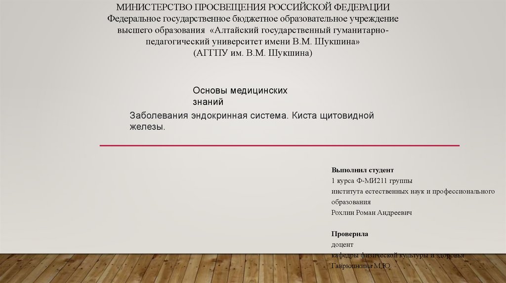 высшего образования «Алтайский государственный гуманитарнопедагогический университет имени В.М. Шукшина»